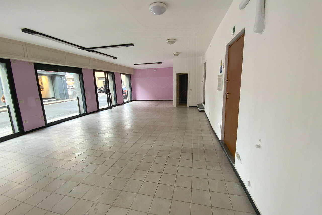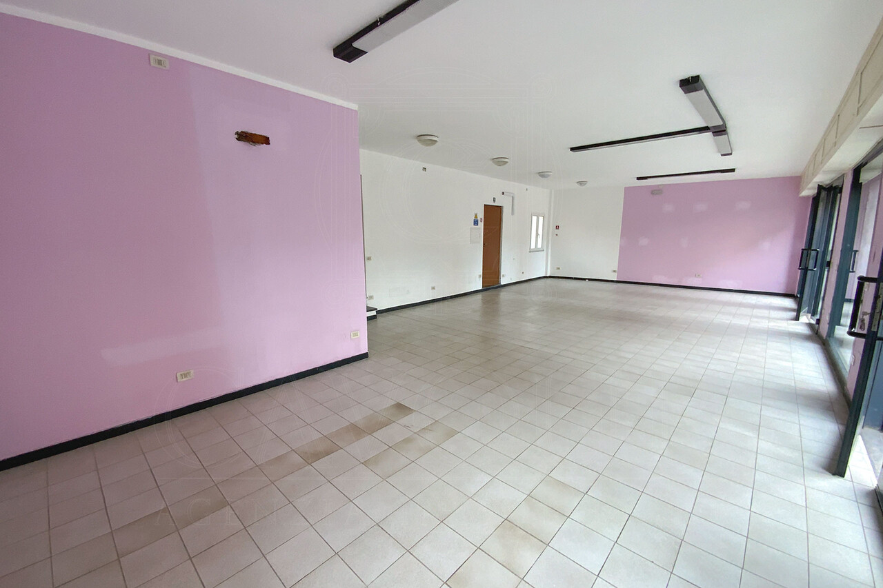 L’immobile, di circa 80 mq, è composto da un ampio ambiente unico con ben 5 vetrine su strada, oltre a bagno e antibagno.