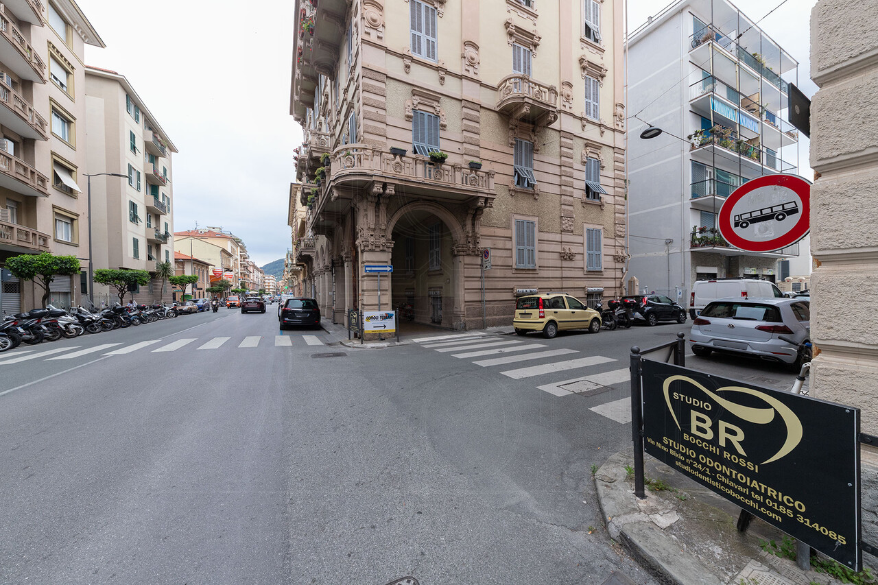 L’accesso avviene tramite un privato giardino storico, delimitato da cancello privato. L’immobile gode di ottima facilità di manovra ed è sviluppato in lunghezza da levante a ponente, con presenza di una finestra.