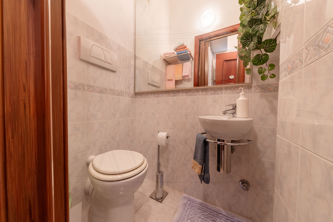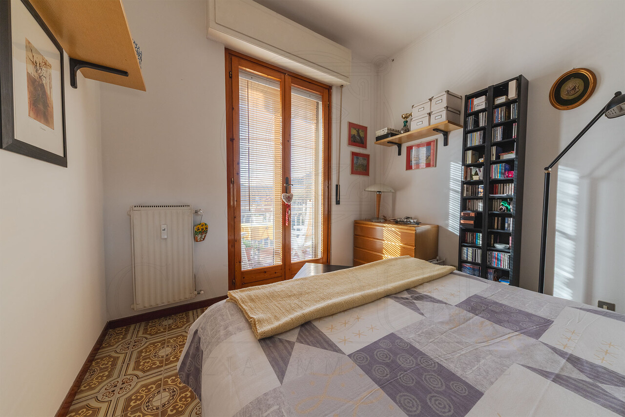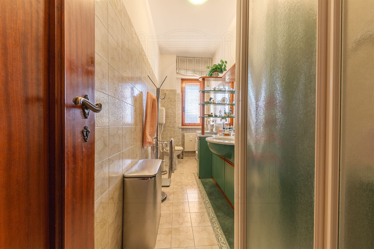 La zona notte ospita due camere da letto e il bagno principale. La presenza di spazi generosi e la buona distribuzione interna offrono inoltre la possibilità, per chi lo desidera, di ricavare una terza camera, rendendo l’immobile adatto anche a famiglie o a chi necessita di uno studio in più.