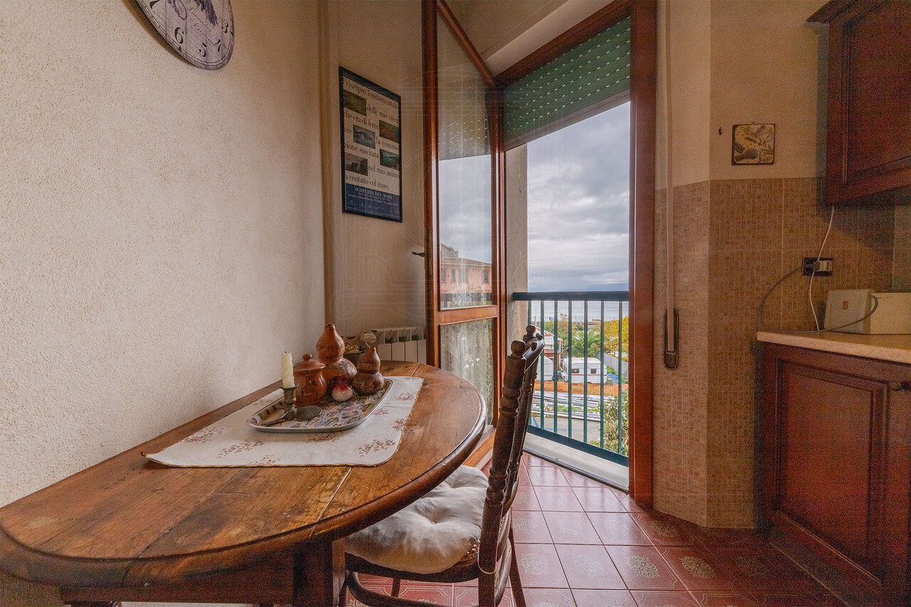 L'immobile è composto da ingresso, ampio soggiorno, cucina abitabile, due camere da letto, bagno finestrato e terrazzino con piacevole vista mare, ideale per momenti di relax all'aperto.