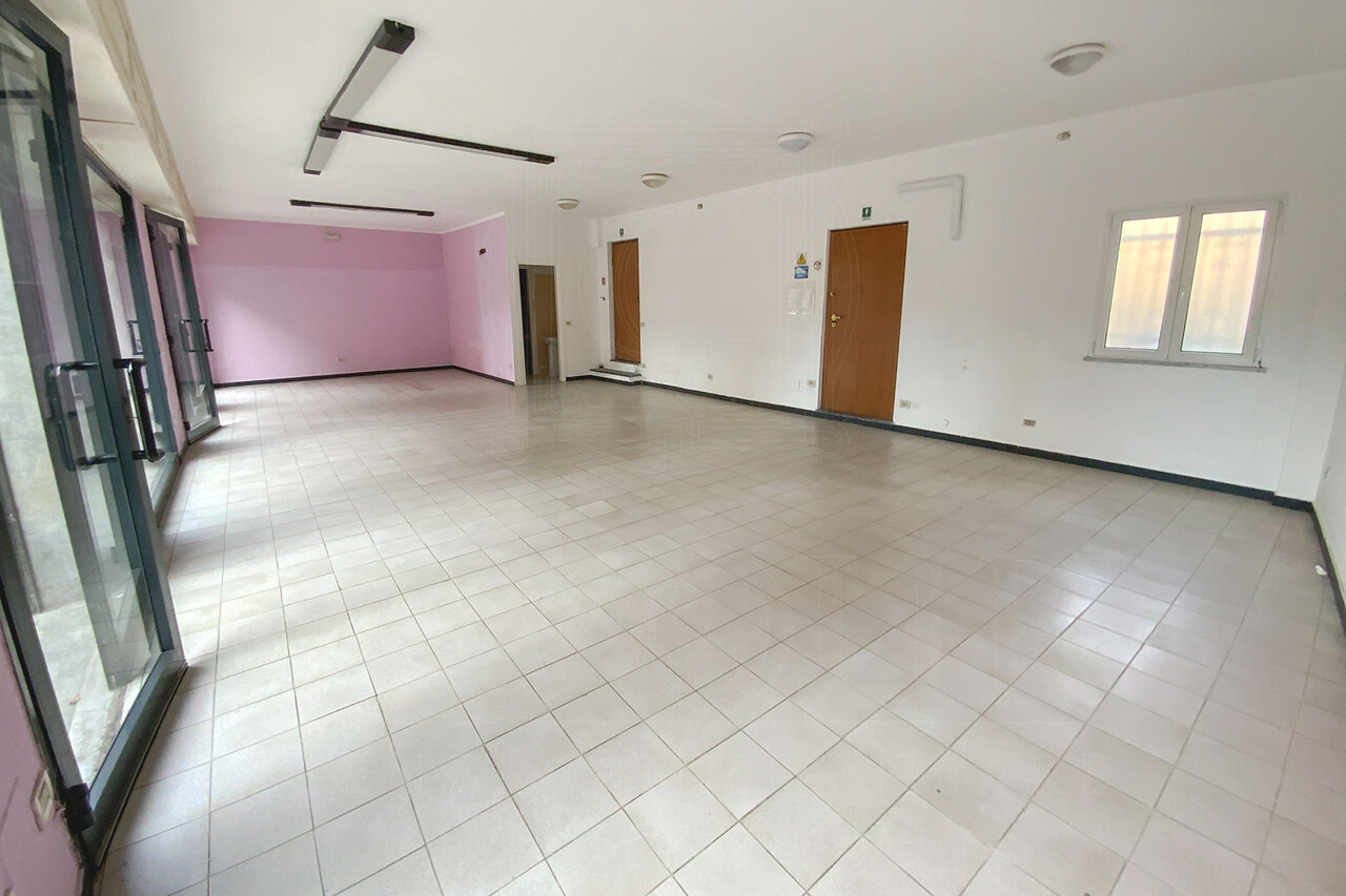 L’immobile, di circa 80 mq, è composto da un ampio ambiente unico con ben 5 vetrine su strada, oltre a bagno e antibagno.