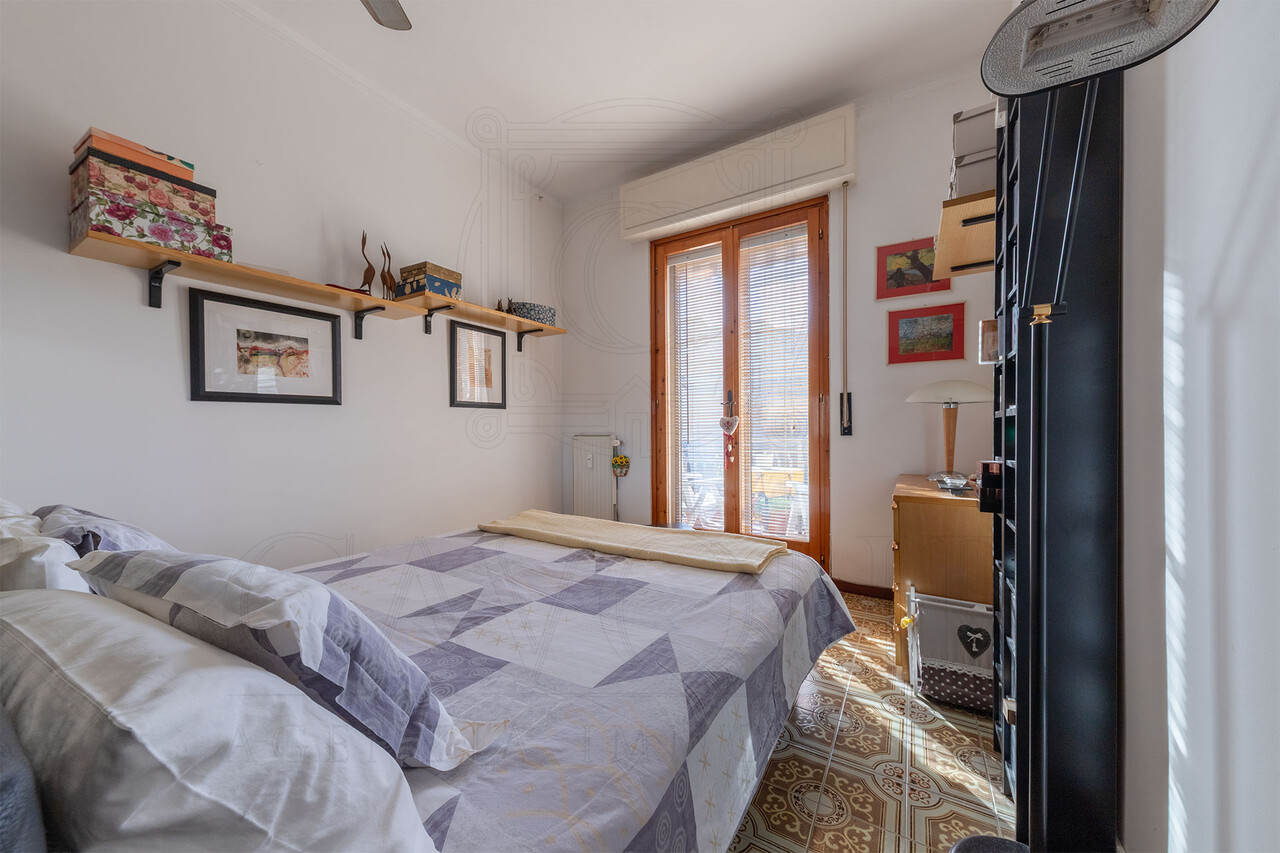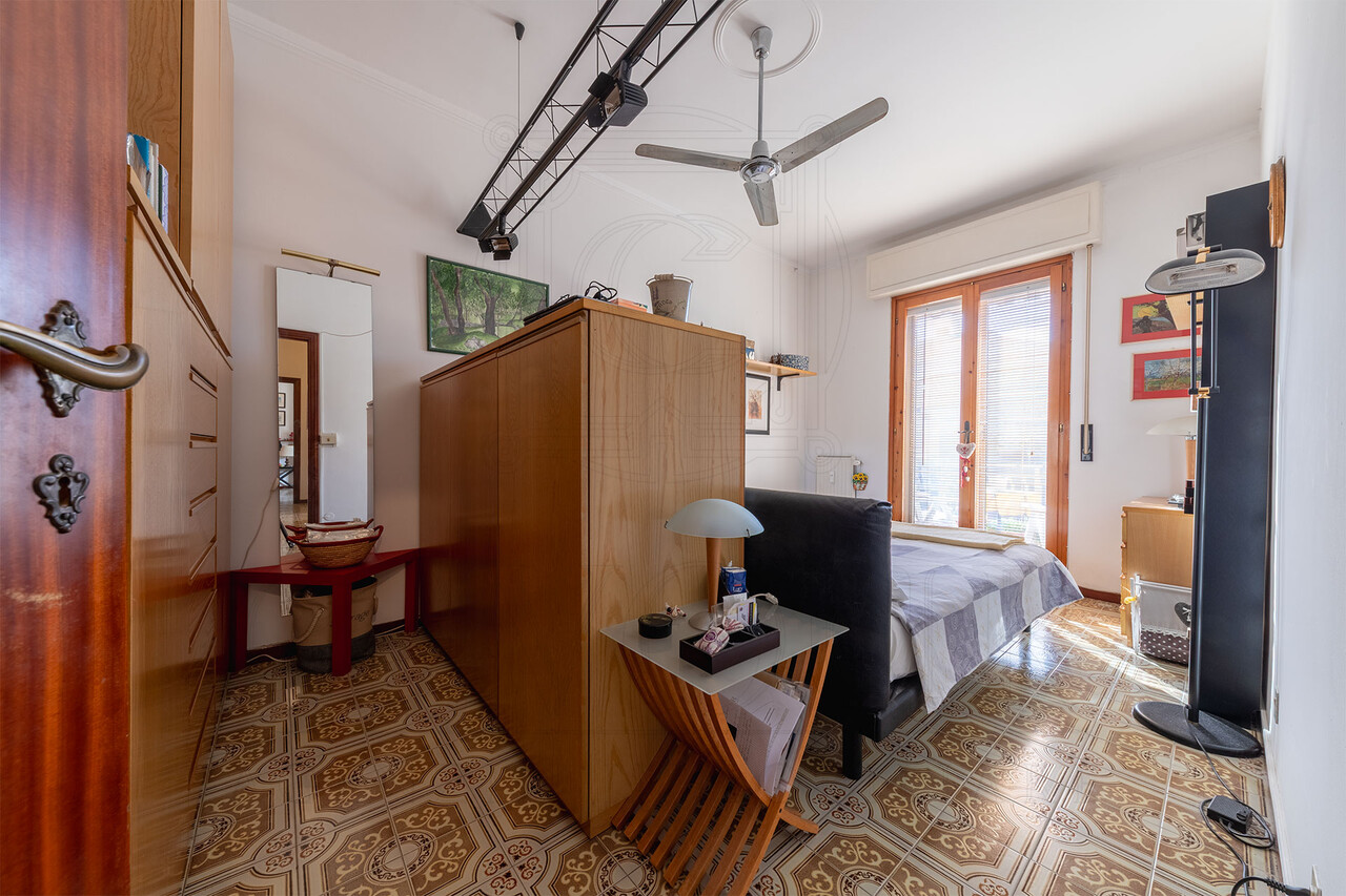 La zona notte ospita due camere da letto e il bagno principale. La presenza di spazi generosi e la buona distribuzione interna offrono inoltre la possibilità, per chi lo desidera, di ricavare una terza camera, rendendo l’immobile adatto anche a famiglie o a chi necessita di uno studio in più.